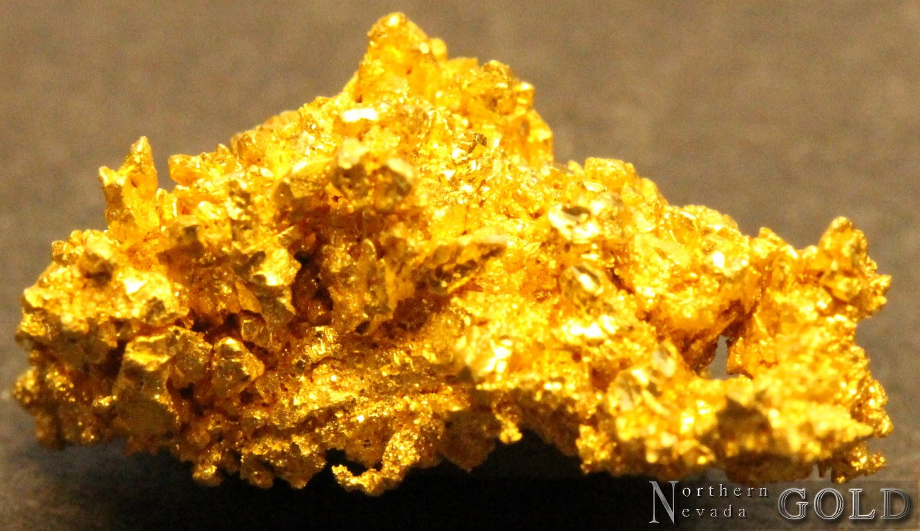 DAZZLING!!  Crystallized Gold. Beautiful specimen of Gold from the Round Mountain mine. This specimen exhibits brilliant luster and a nice orangish gold color. The entire specimen is composed of beautiful Gold crystals. Modified octahedrons, cubes, and cuboctahedra crystals all are well exhibited. A trace Quartz matrix remains. Weighs 2.64 Grams