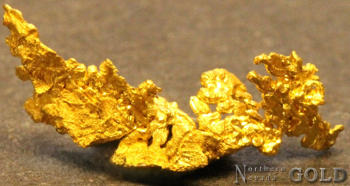 A small, crystallized leaf Gold specimen from the famous Eagles Nest mine, Michigan Bluff Mining District, in Placer Co. California. The specimen exhibits bright luster, and a brassy color.  Interesting character. No Quartz matrix remains. Weighs .28 Gram.