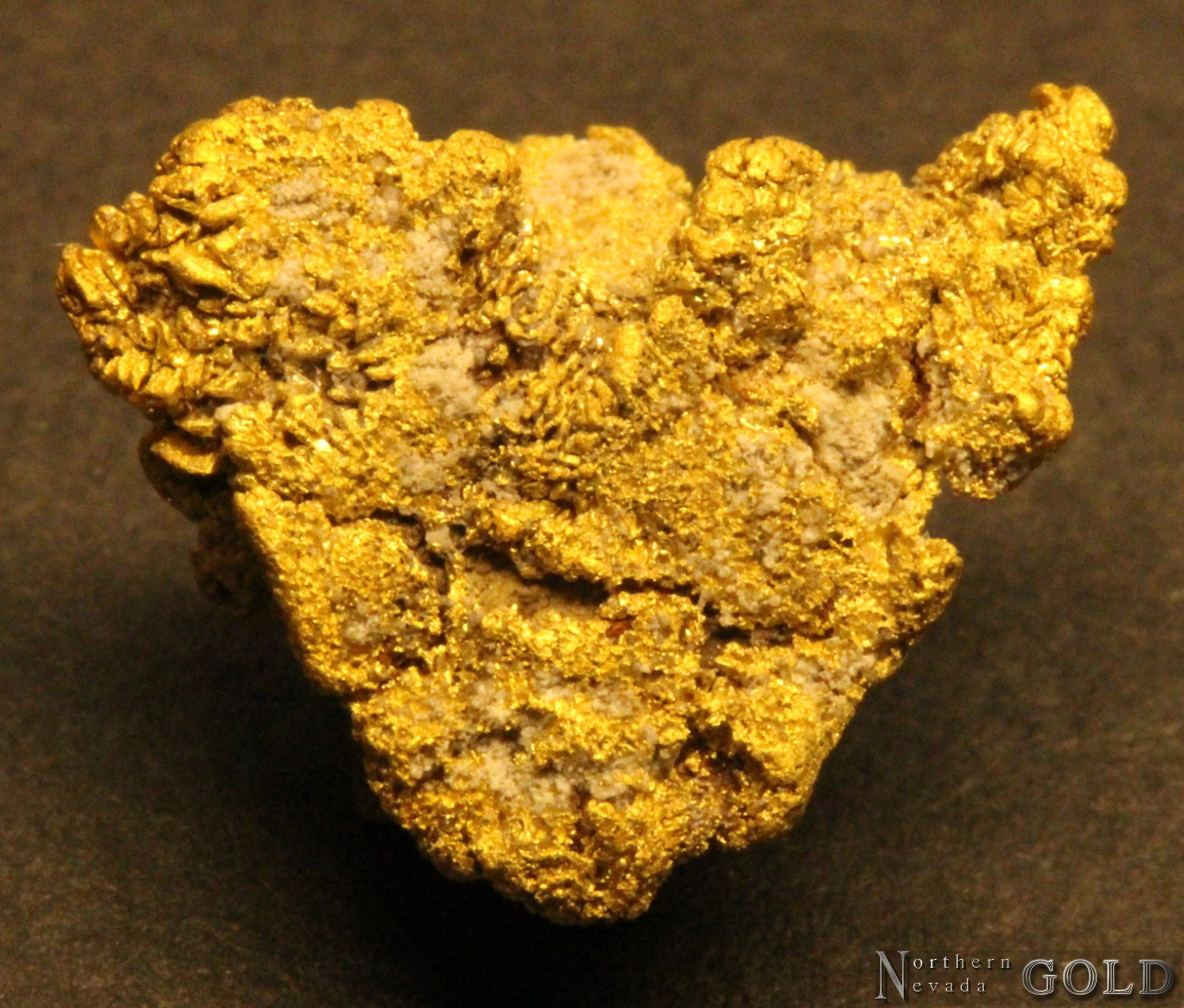 Manhattan Nevada Crystalline Gold. Velvety lustered, with a pale bronze-yellow color. Gold occurs as a myriad of random, dendritically crystallized crystals. leaves/sheets. All highly compressed.  Moderate dendritic crystal growth. Few % Quartz matrix remains. Weighs 3.9 Grams.
