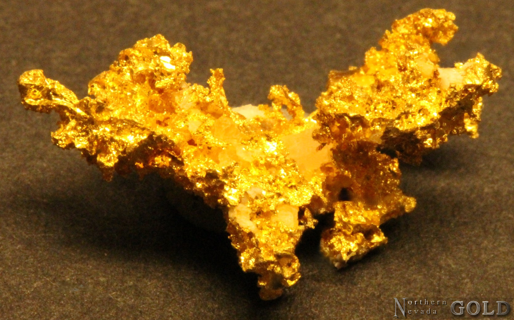 A Splendid, crystalline Gold specimen from the famous Round Mountain Mine, NV. The specimen exhibits brilliant luster, and rich, orangey-yellow color.  Few % Quartz matrix remains. Weighs 1.7 Grams