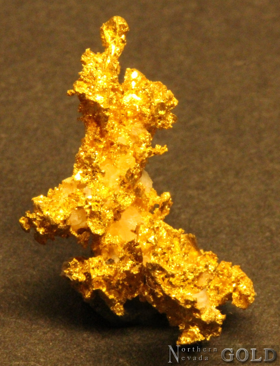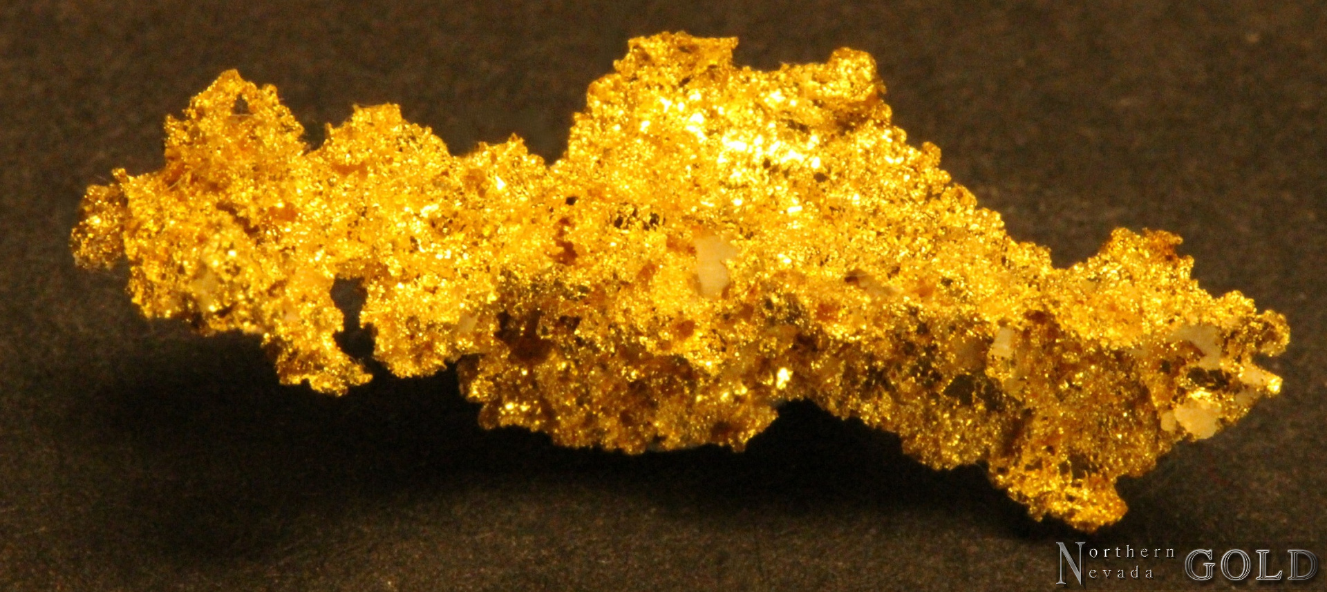 A Splendid, crystalline Gold specimen from the famous Round Mountain Mine, NV. The specimen exhibits brilliant luster, and rich, orangey-yellow color.  Trace Quartz matrix remains. Weighs 1.2 Grams