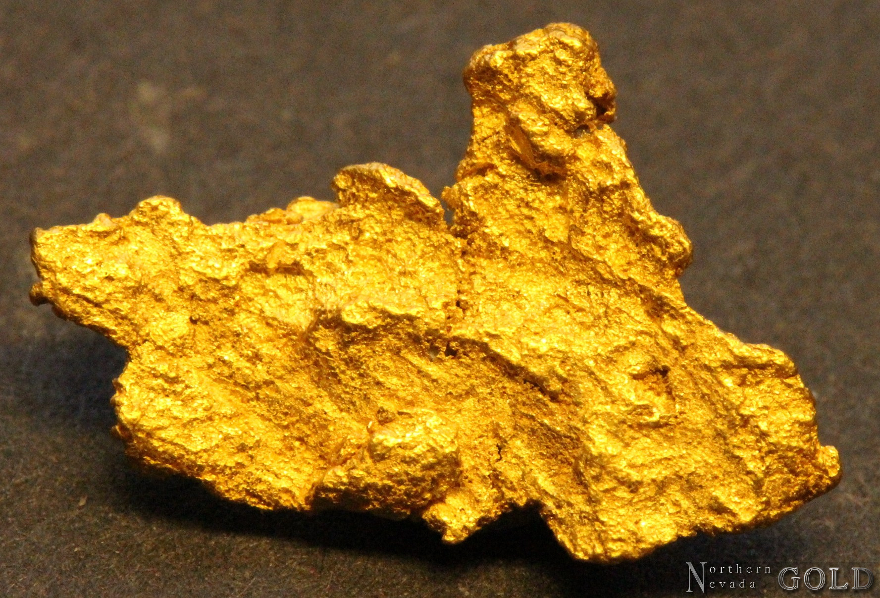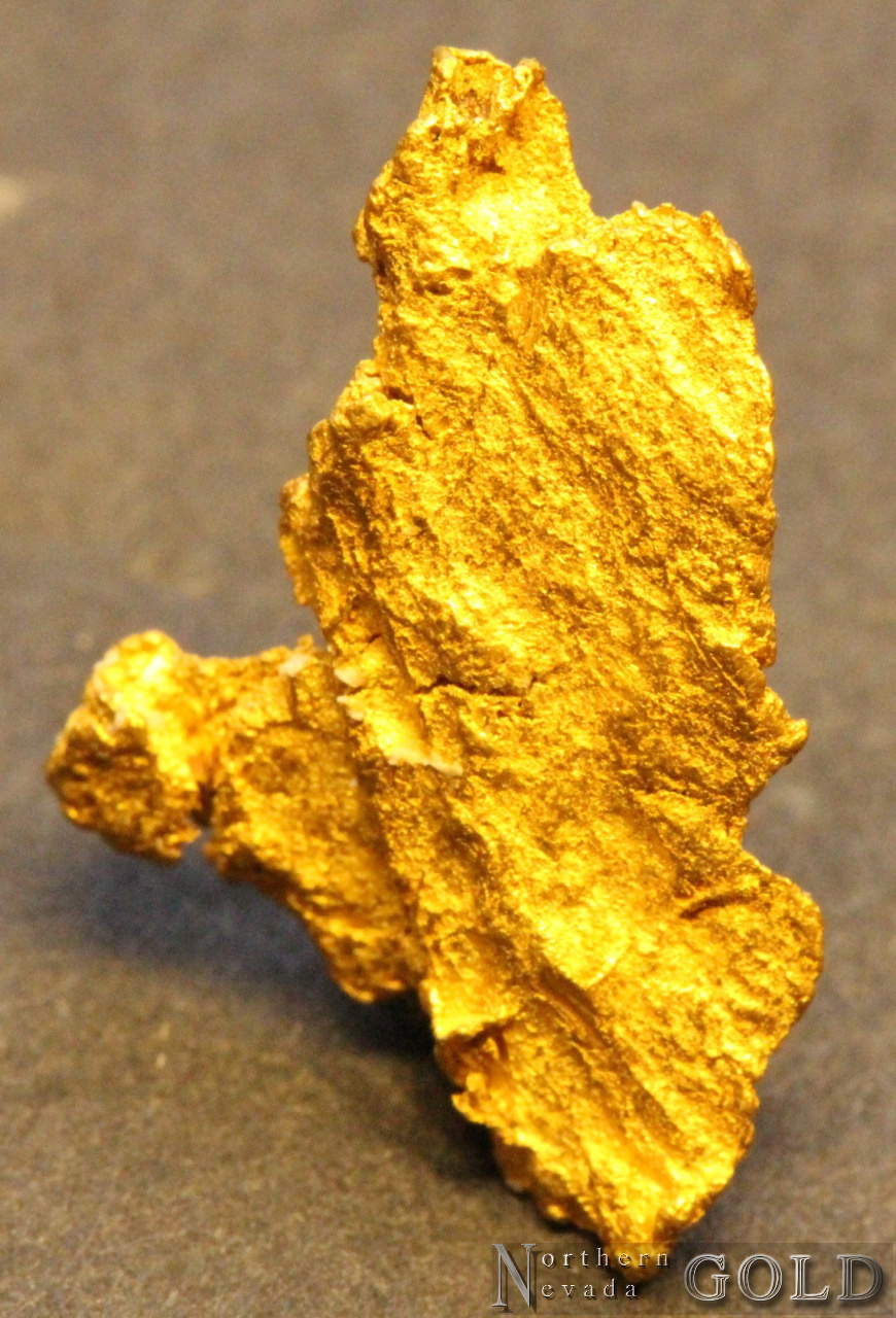A small Leaf Gold Nugget from the Yukon Territories. Shows bright luster and an orangish-yellow color. No Quartz matrix remains. Weighs .93 Gram