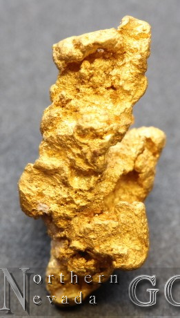 A Curious, small nugget weighing 1.9 Grams from the Rose Creek placer fields. Trace Quartz matrix remains.   Gold exhibits a nice bright, lively luster, and a buttery-yellow color.
