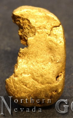 A pretty Gold nugget from the Blue Mtn. mining area of Oregon.   Rich, orangish-yellow color and very bright luster. Shows very strong water-worn appearance.  Completely natural, not etched or acid treated. No Quartz matrix remains. Looks like nugget was broken long ago and then was re-weathered. Weighs 1.3 Grams