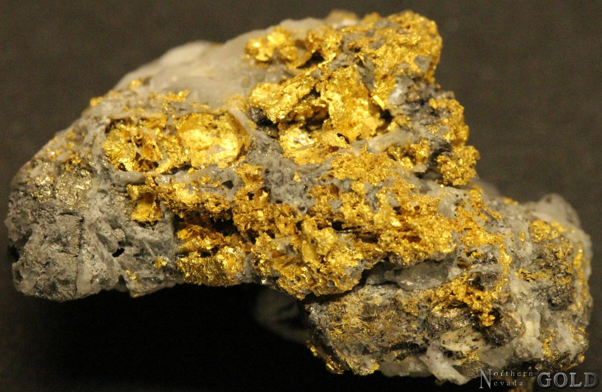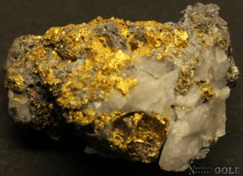 UNIQUE  This is a specimen of Arsenopyrite with crystalline Gold in Quartz from the Black Diamond mine  in Plumas Co. CA.  The Gold occurs as thin leaves and blades, and as crystal replacements of the actual Arsenopyrite. Gold shows brilliant luster and a rich buttery-yellow color. A very interesting piece.