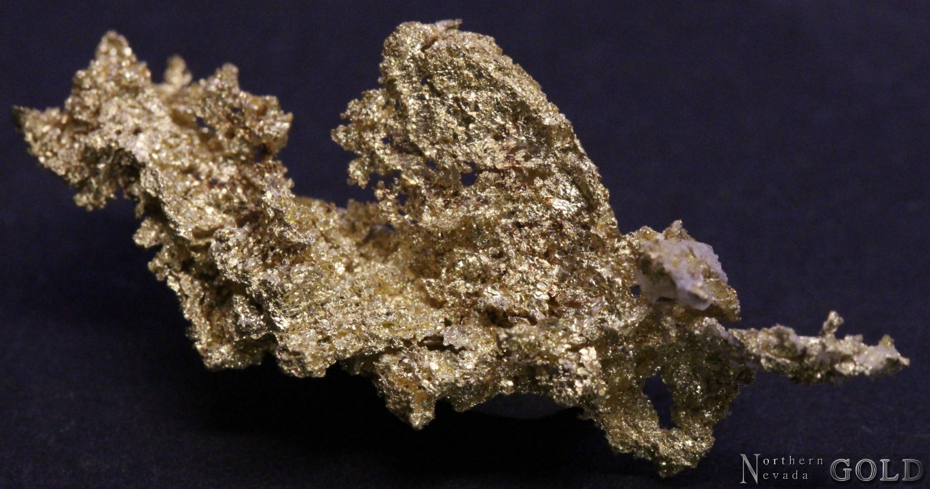 An exquisite, crystalline Gold specimen from the Oriental Mine in the Alleghany Mining District.  Arborescent Gold shows brilliant luster and a nice deep lemony yellow color. No matrix remains.  Weighs .09 oz.