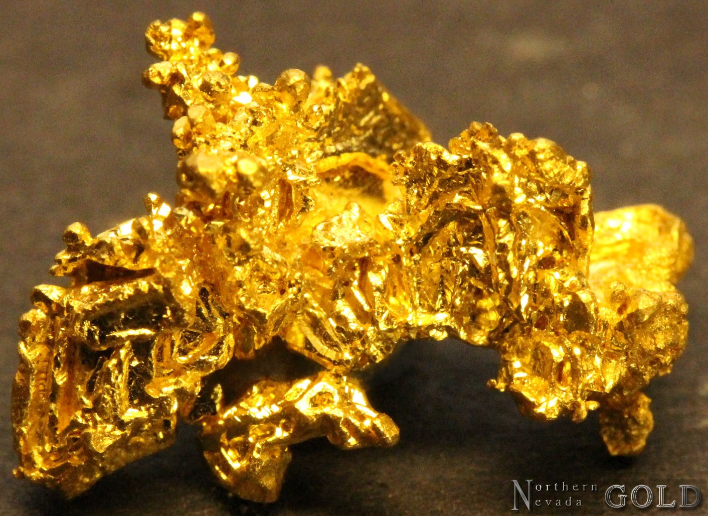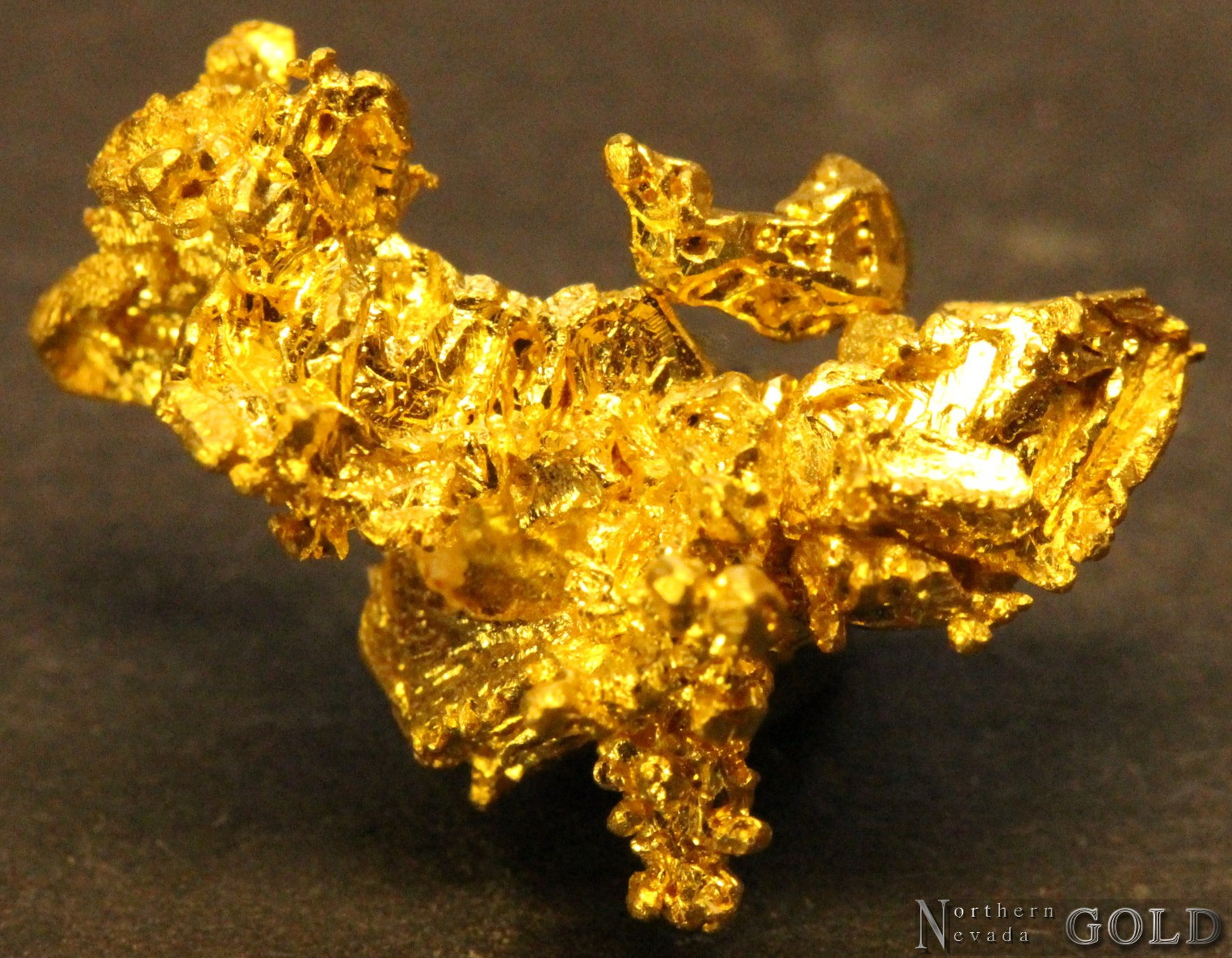 A Splendid, crystallized Gold specimen from the famous Eagles Nest mine, Michigan Bluff Mining District, in Placer Co. California. The specimen exhibits brilliant luster, and rich, buttery-yellow color.  The Gold forms brilliant, mirror-like, flattened octahedrons, and numerous raised octahedral crystals. Weighs 3.4 Grams