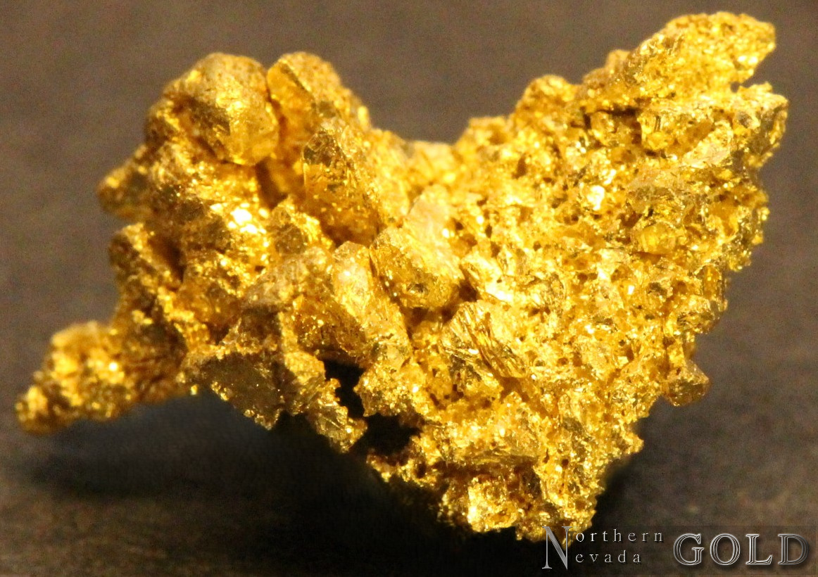 Crystallized Gold. A lovely specimen of Gold from the Round Mountain mine. Specimen exhibits brilliant luster and a nice orangish gold color. The specimen is mostly composed of Gold crystals. Modified octahedrons, cubes, and cuboctahedra crystals all are exhibited. Weighs 1.06 Grams