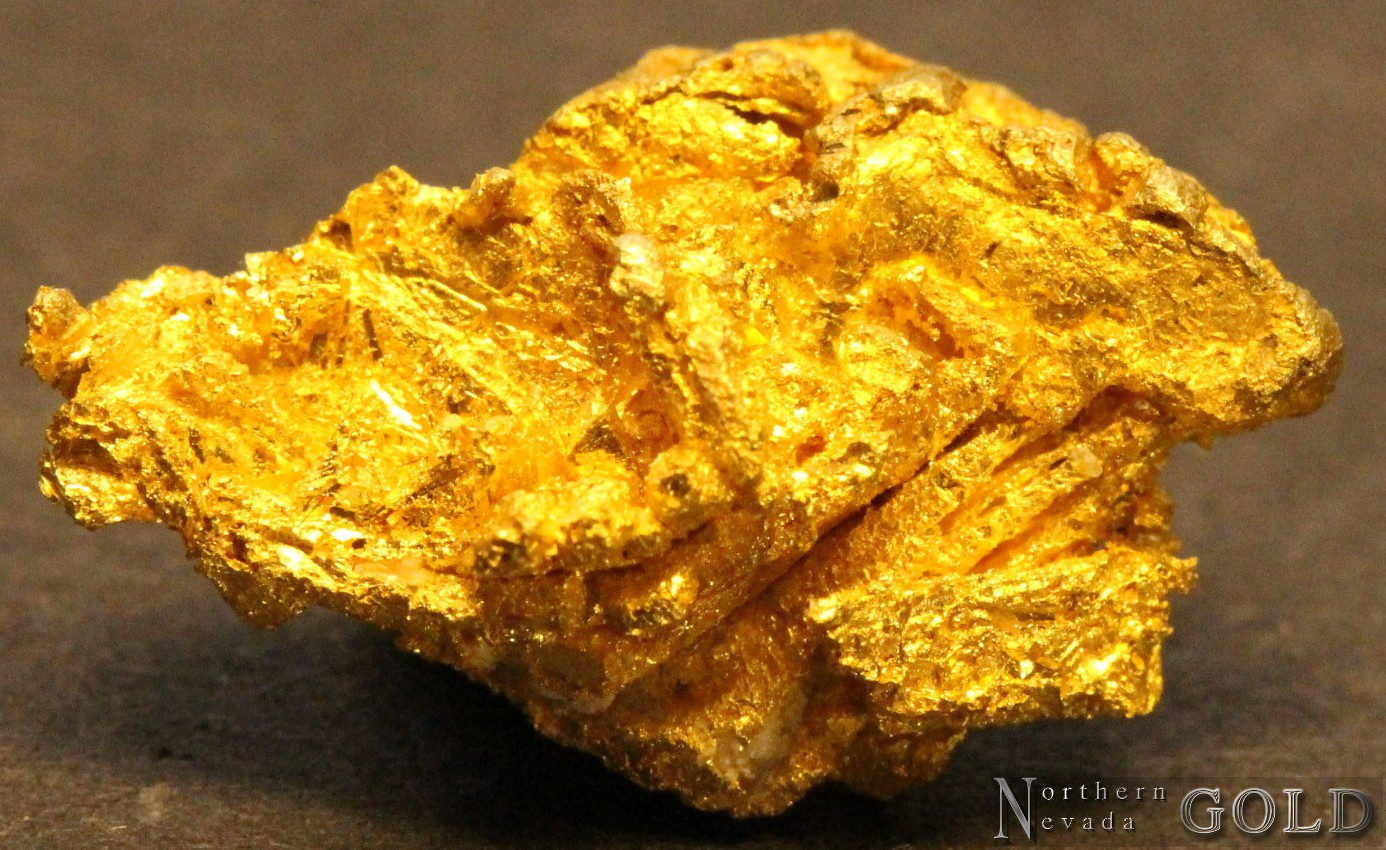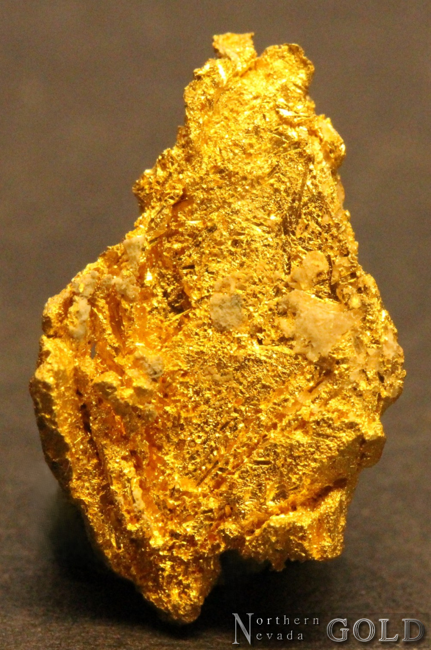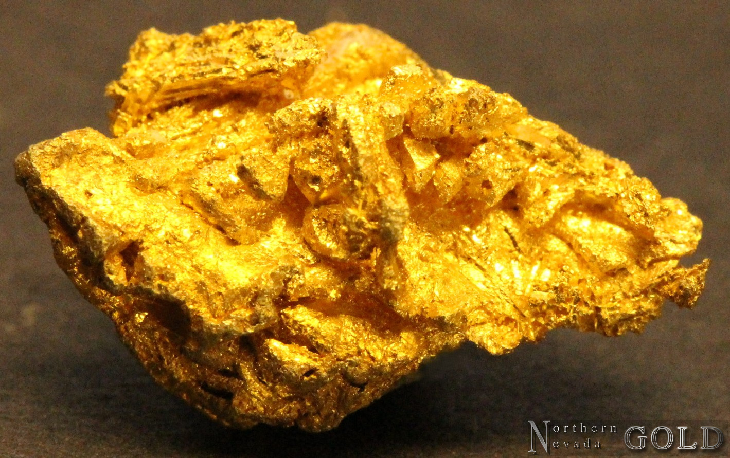 Splendid specimen of Gold from the Round Mountain mine. This specimen exhibits brilliant luster and an orangish gold color. The entire specimen is composed of beautiful Gold crystals. Modified, cuboctahedra, and weakly developed, columnar-like Spinel-Law elongated crystals. Trace Quartz matrix. Weighs 2.24 Grams