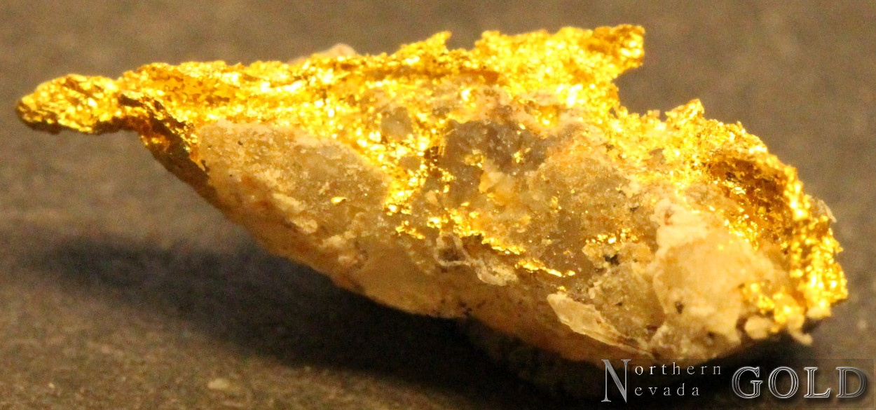 A charming, small, crystalline Gold on white Quartz specimen. Gold shows brilliant luster with strong buttery-yellow color. Found in the Western Sahara, Assa-Zag Province, Morocco. Weighs .35 Gram.