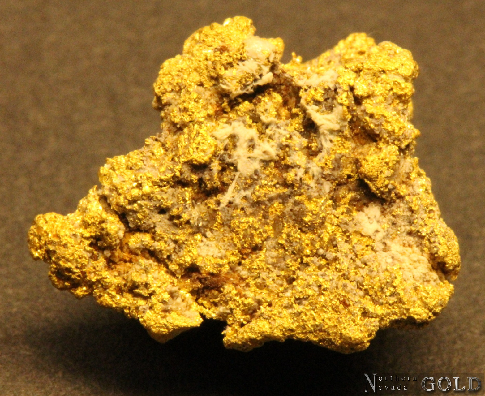Manhattan Nevada Crystalline Gold. Velvety lustered, with a pale bronze-yellow color. Gold occurs as a myriad of random, dendritically crystallized crystals. leaves/sheets. All highly compressed.  Moderate dendritic crystal growth. Few % Quartz matrix remains. Weighs 3.9 Grams.