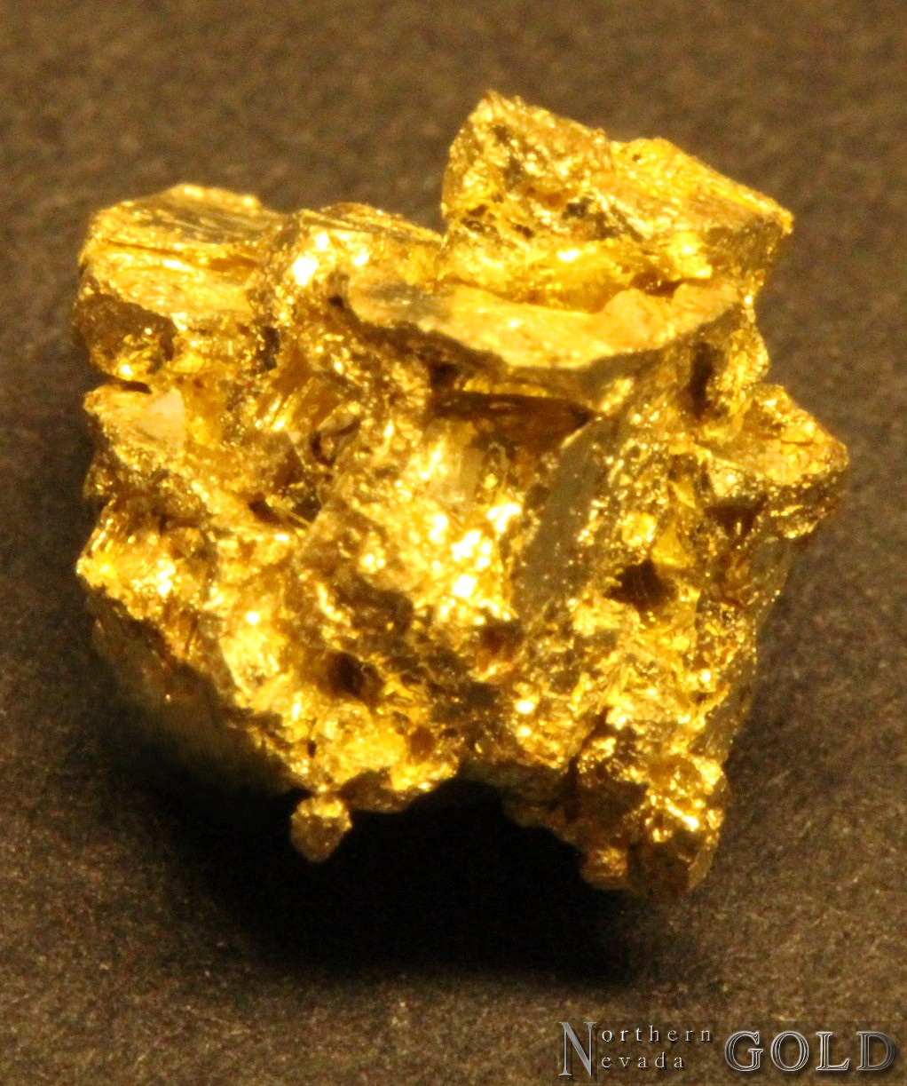 CRYSTALLIZED GOLD! Beautiful small specimen of Gold from the Round Mountain mine. This specimen exhibits brilliant luster and a pale gold color due to the natural alloy of 70% Au, and 30% Ag. The entire specimen is composed of beautiful Gold crystals. Modified cuboctahedra, and octahedrons are well exhibited.  A trace of Quartz/Adularia matrix remains. Weighs 1.06 Grams