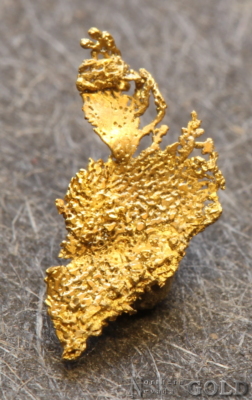 Micro-mount Two dendritic, crystallized leaf Gold specimens. Very small, intricate and complex, with a few of the modified leaves crystallizing into individual branching stalks that are occasionally capped by weakly developed octahedrons on the terminations. Bright luster, nice color. Unique and scarce specimens. Very difficult to find!  Found within an obscure, old, historic, Nevada Gold camp.